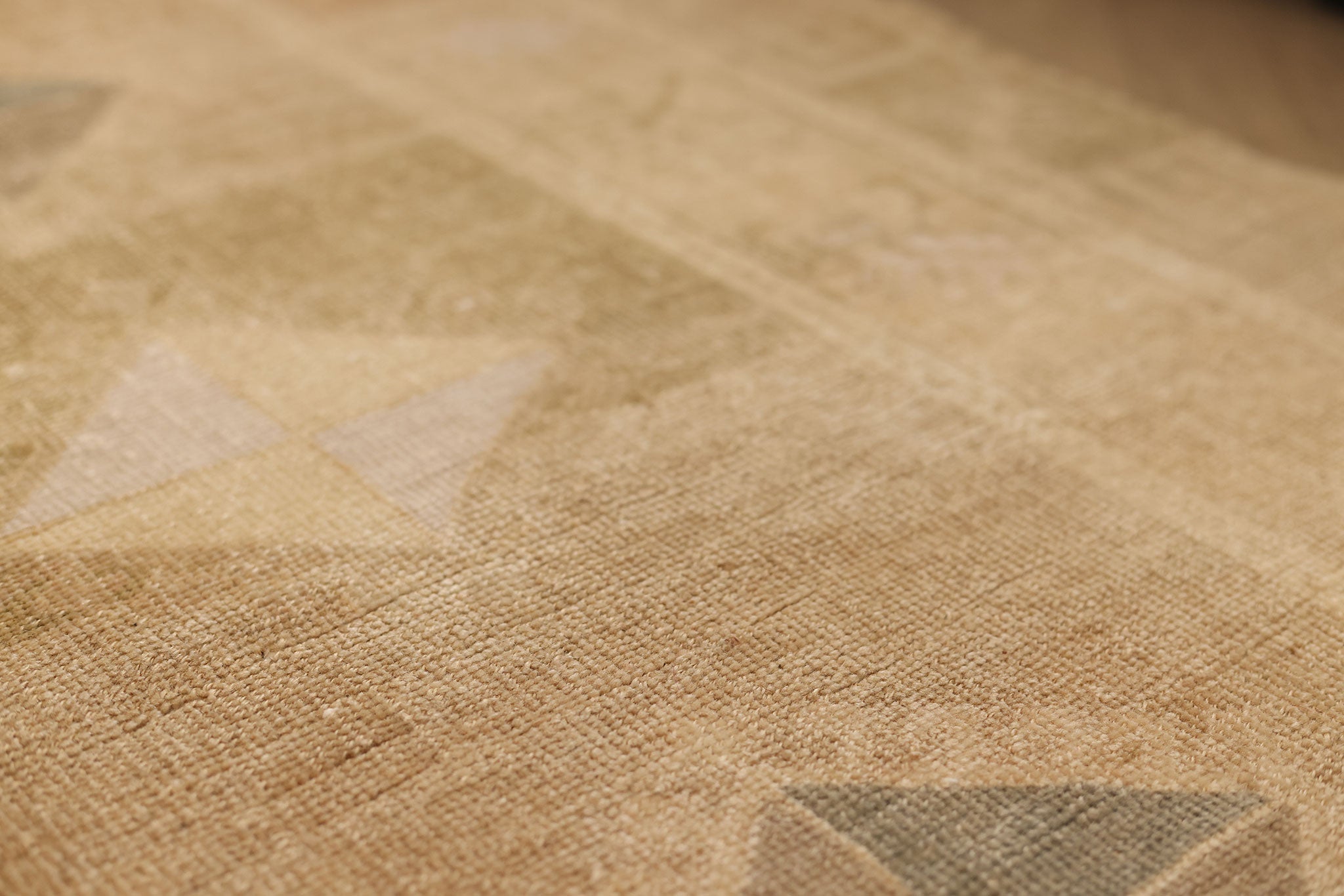 Every 3–5 years, we suggest a professional hand-wash for vintage Turkish rugs. Please avoid steam cleaning or dry cleaning, as these methods can damage natural wool fibers and vegetable dyes. A safe cleaning method involves pH-balanced soap and a soft-bristled brush, followed by gentle rinsing.