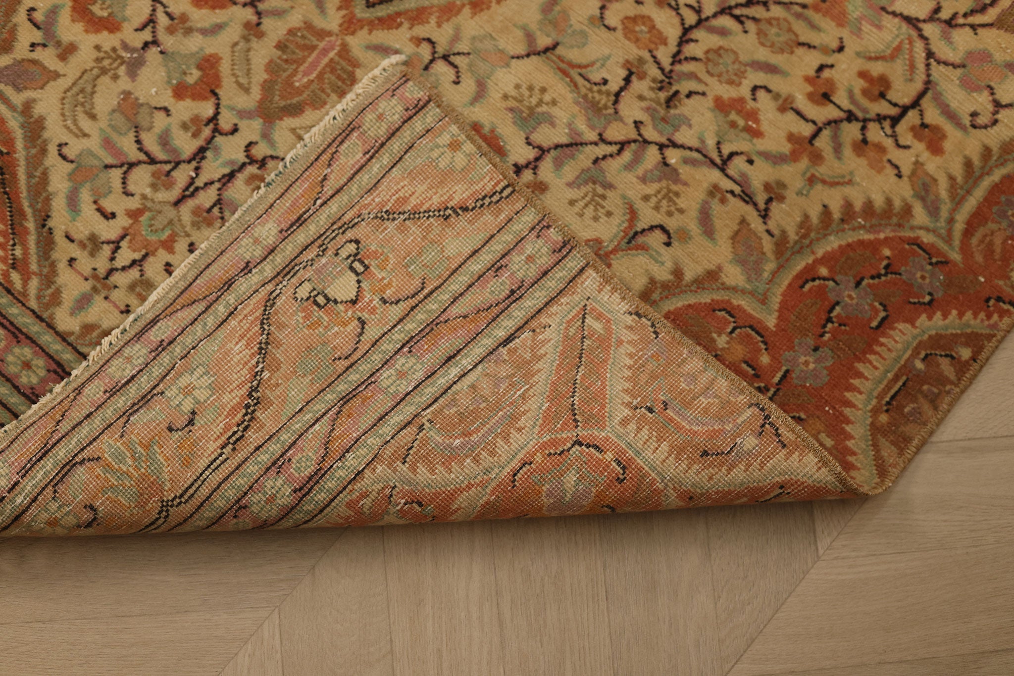 Every 3–5 years, we suggest a professional hand-wash for vintage Turkish rugs. Please avoid steam cleaning or dry cleaning, as these methods can damage natural wool fibers and vegetable dyes. A safe cleaning method involves pH-balanced soap and a soft-bristled brush, followed by gentle rinsing.
