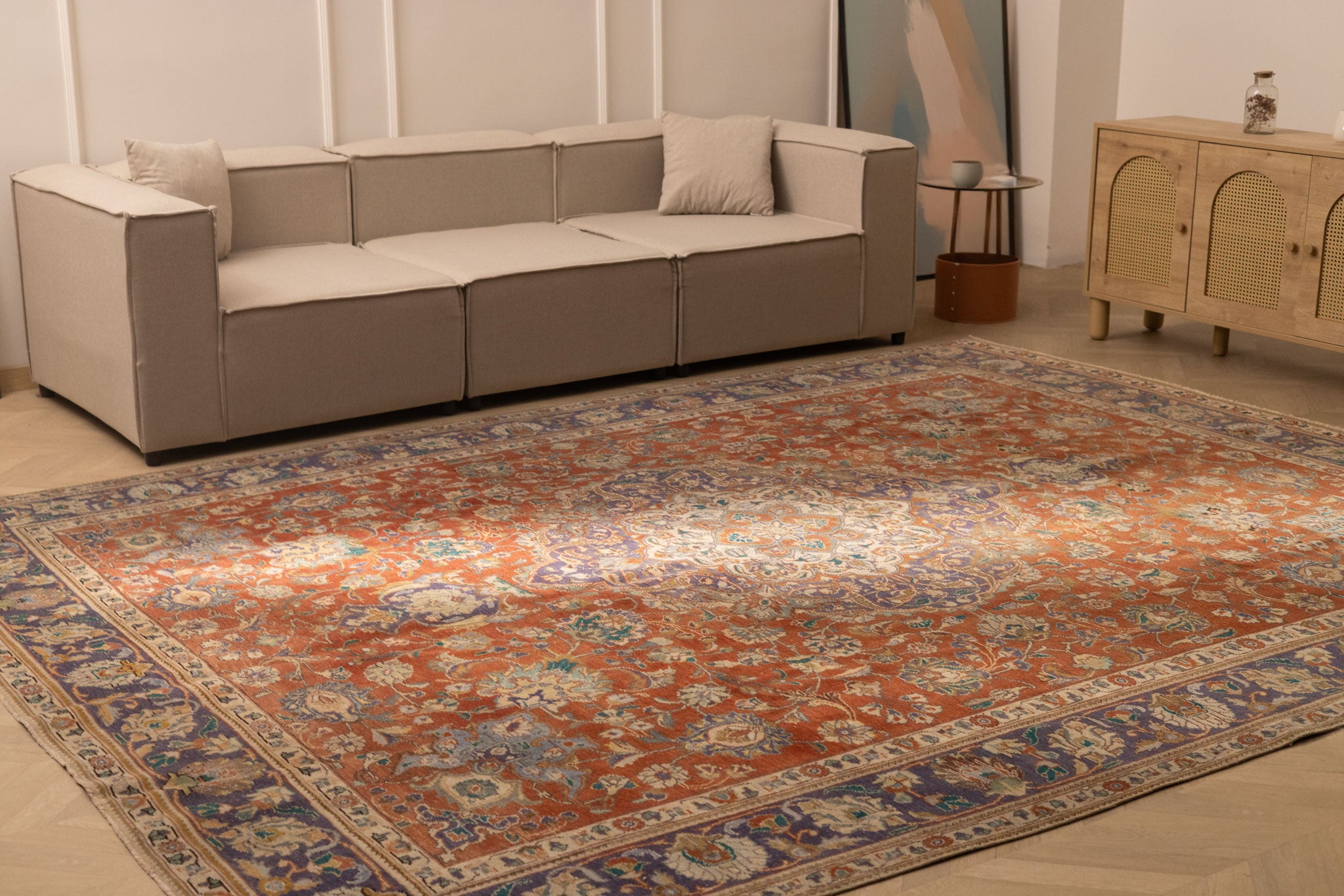 Every few months, flip your rug and vacuum the back to clear out grit from the base. Rotating your Turkish rug once a year ensures even wear and helps prevent uneven fading over time.
