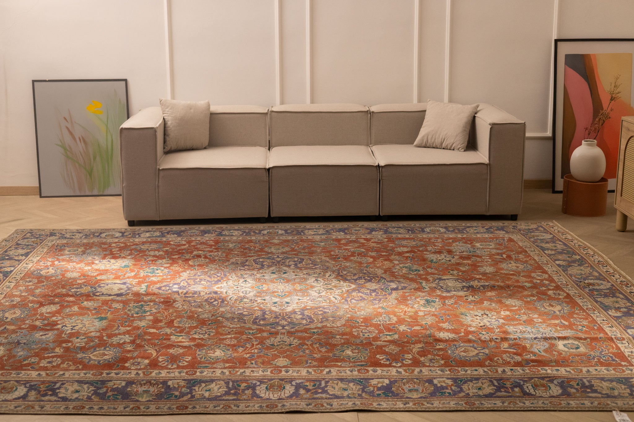 Experience the luxurious difference of pure craftsmanship. Our vintage rugs are woven exclusively from soft, natural wool and durable cotton, offering a sensory experience that synthetic materials simply cannot replicate. Feel the genuine, timeless comfort underfoot and bring the warmth of authentic fibers into your home.
