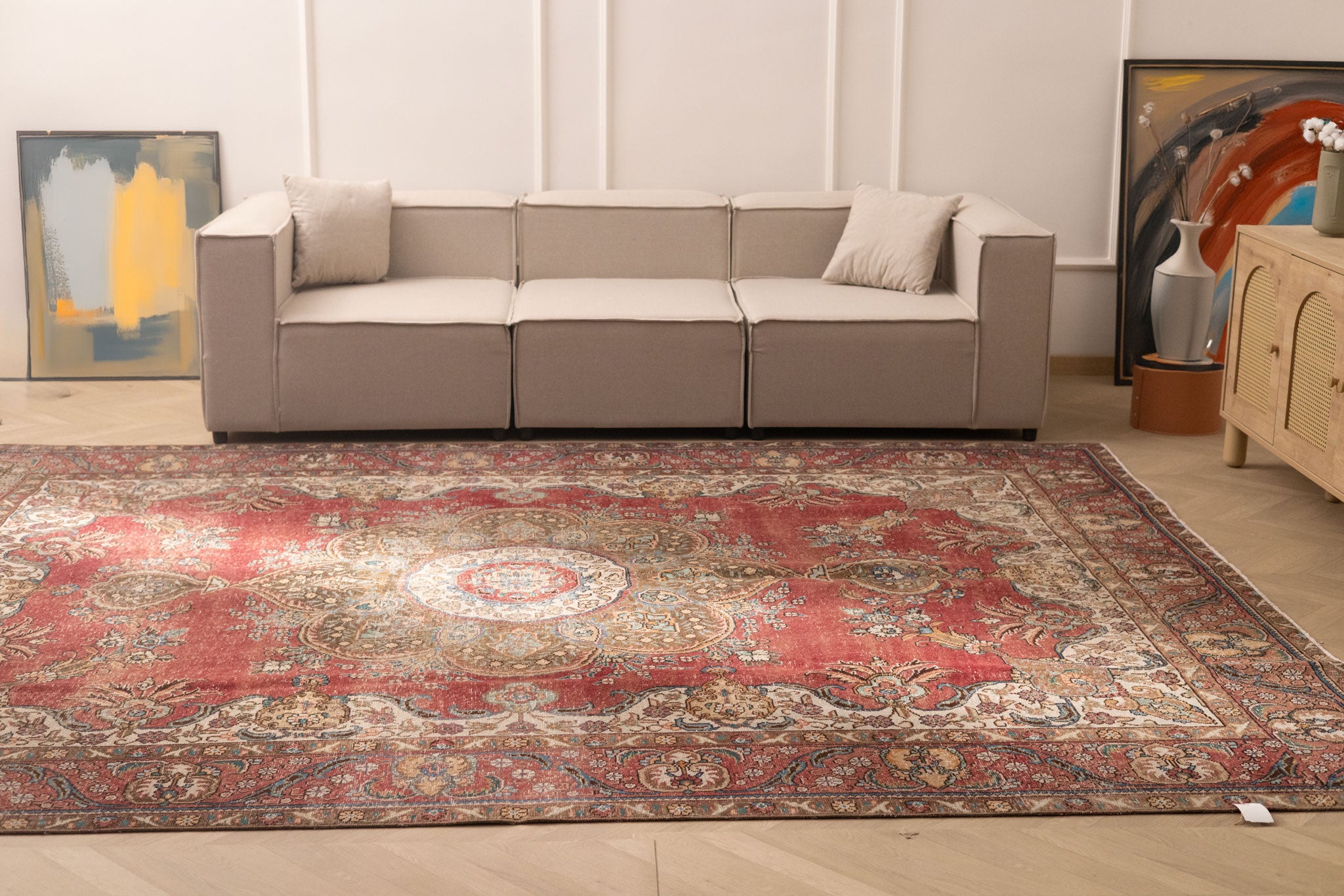 Every 3–5 years, we suggest a professional hand-wash for vintage Turkish rugs. Please avoid steam cleaning or dry cleaning, as these methods can damage natural wool fibers and vegetable dyes. A safe cleaning method involves pH-balanced soap and a soft-bristled brush, followed by gentle rinsing.