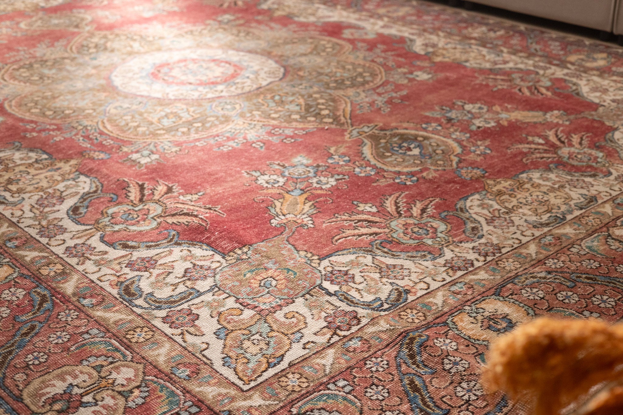 We recommend vacuuming your vintage rug once or twice a month to remove dust and dirt. Use a suction-only vacuum or an attachment without a rotary brush, as this protects the wool fibers and hand-knotted foundation from unnecessary wear.