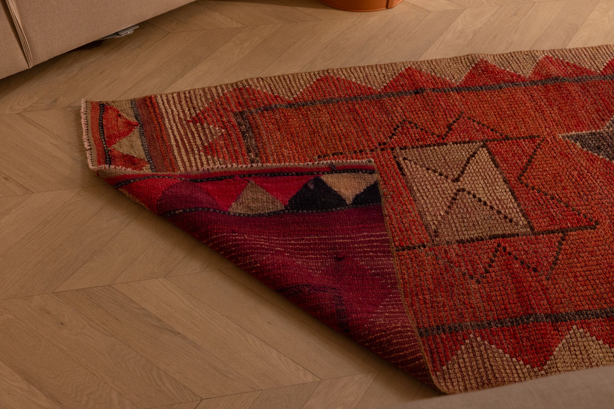 Every few months, flip your rug and vacuum the back to clear out grit from the base. Rotating your Turkish rug once a year ensures even wear and helps prevent uneven fading over time.