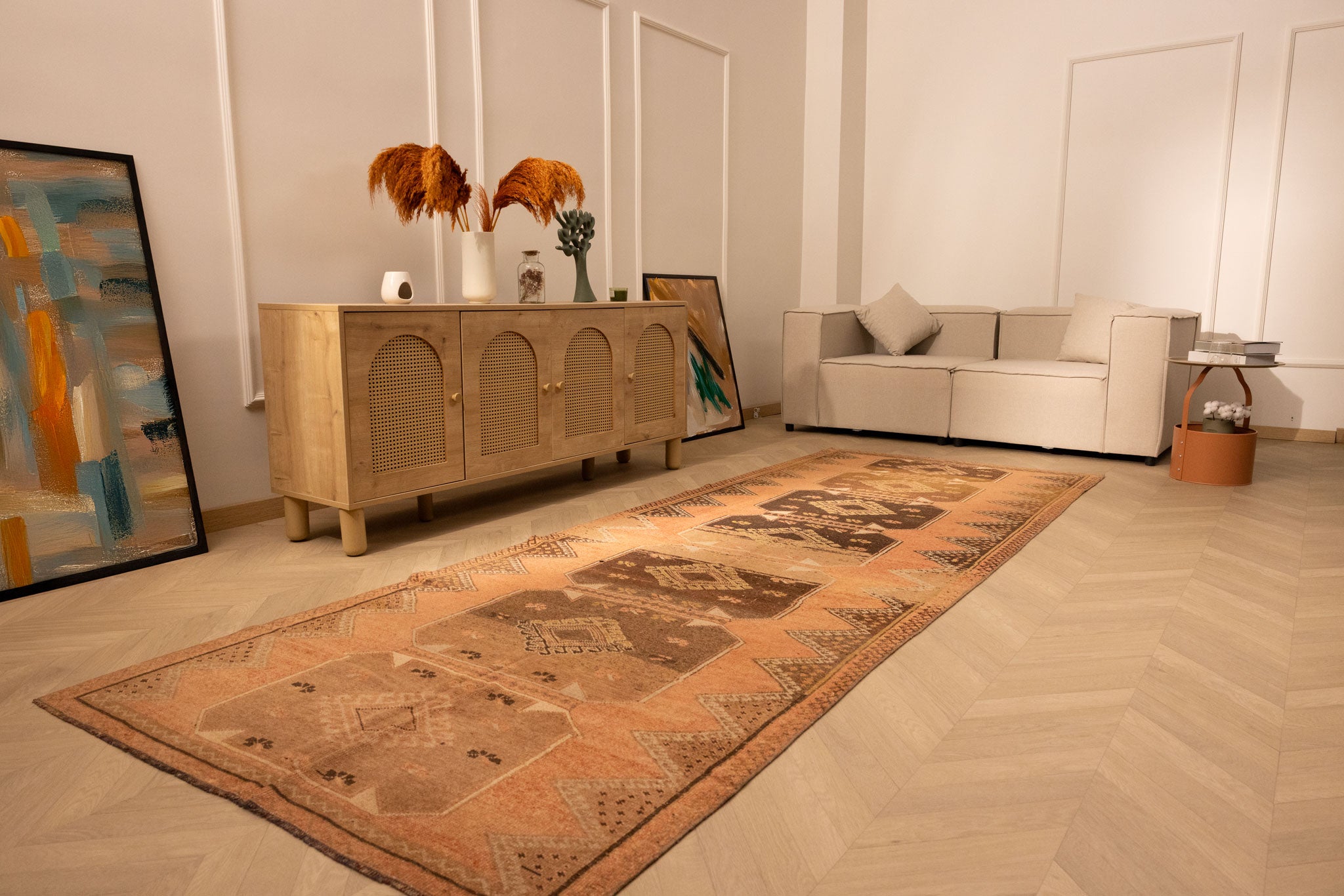 Dive into Alarug's world of hand-selected vintage treasures. Each rug boasts an original design, reflecting centuries of artisanal tradition. Find that singular piece whose character and pattern perfectly complement your space, offering an authentic blend of history and contemporary style.