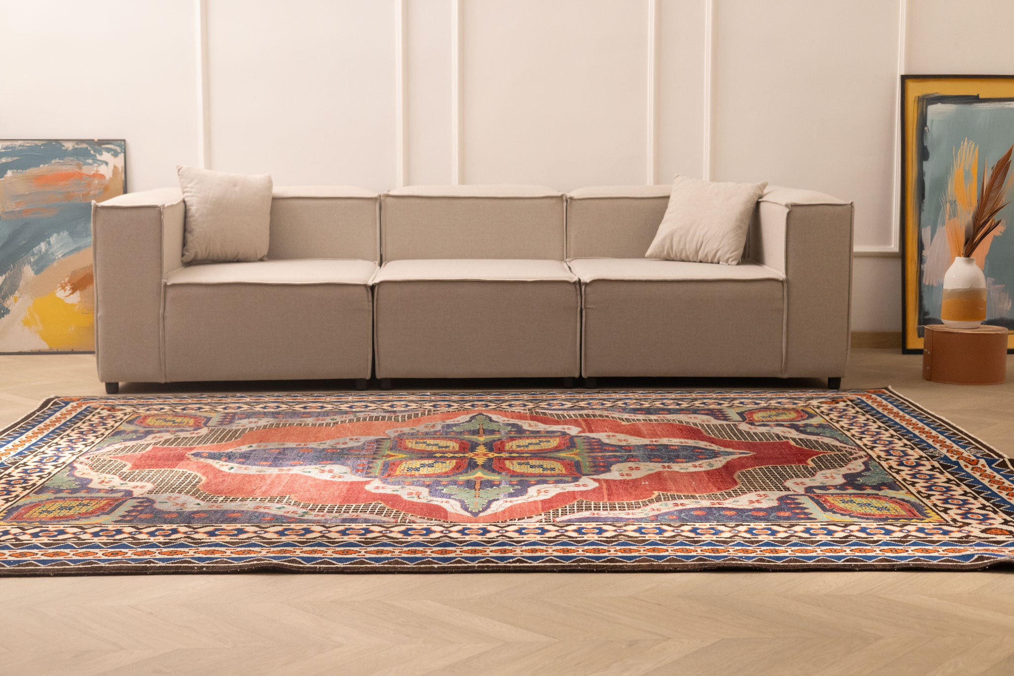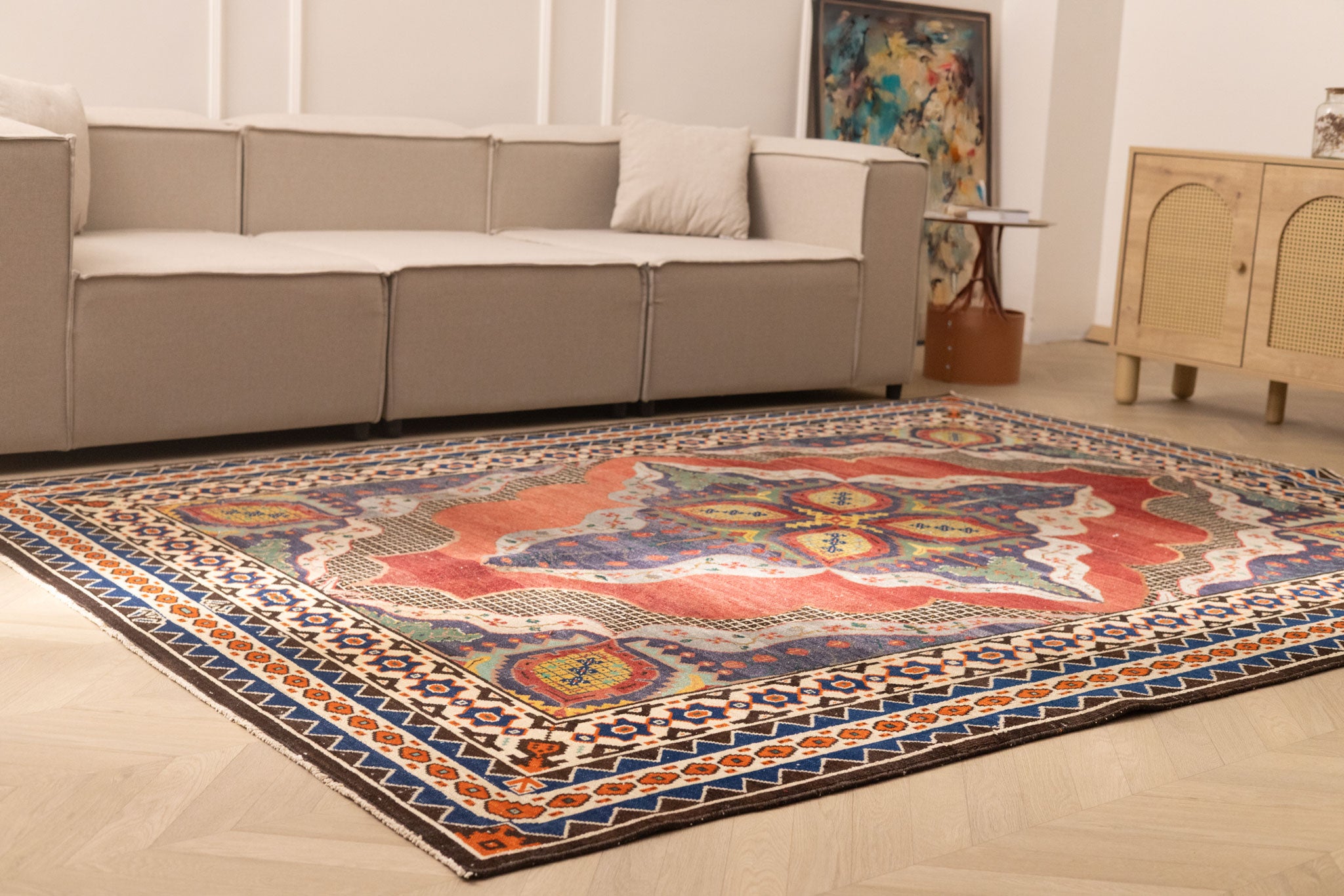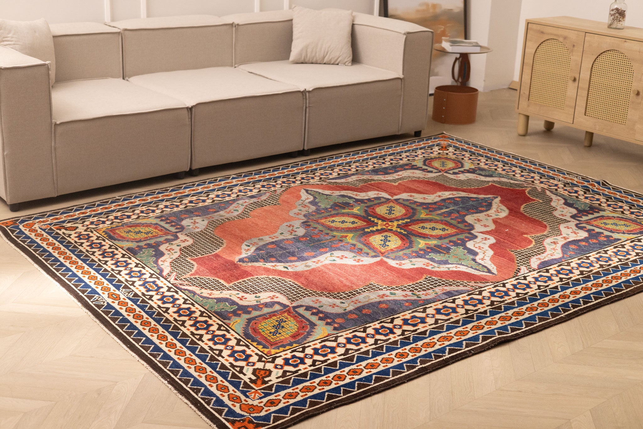 Dive into Alarug's world of hand-selected vintage treasures. Each rug boasts an original design, reflecting centuries of artisanal tradition. Find that singular piece whose character and pattern perfectly complement your space, offering an authentic blend of history and contemporary style.