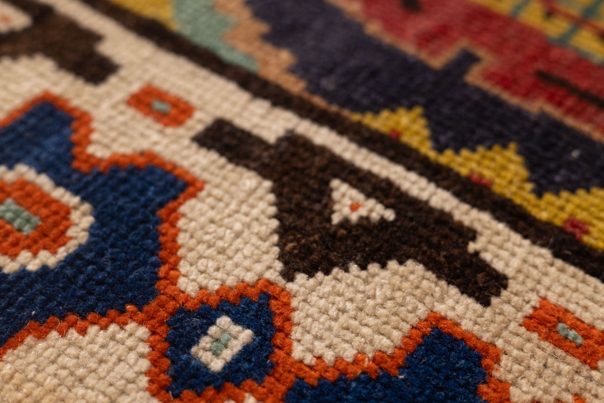 We recommend vacuuming your vintage rug once or twice a month to remove dust and dirt. Use a suction-only vacuum or an attachment without a rotary brush, as this protects the wool fibers and hand-knotted foundation from unnecessary wear.