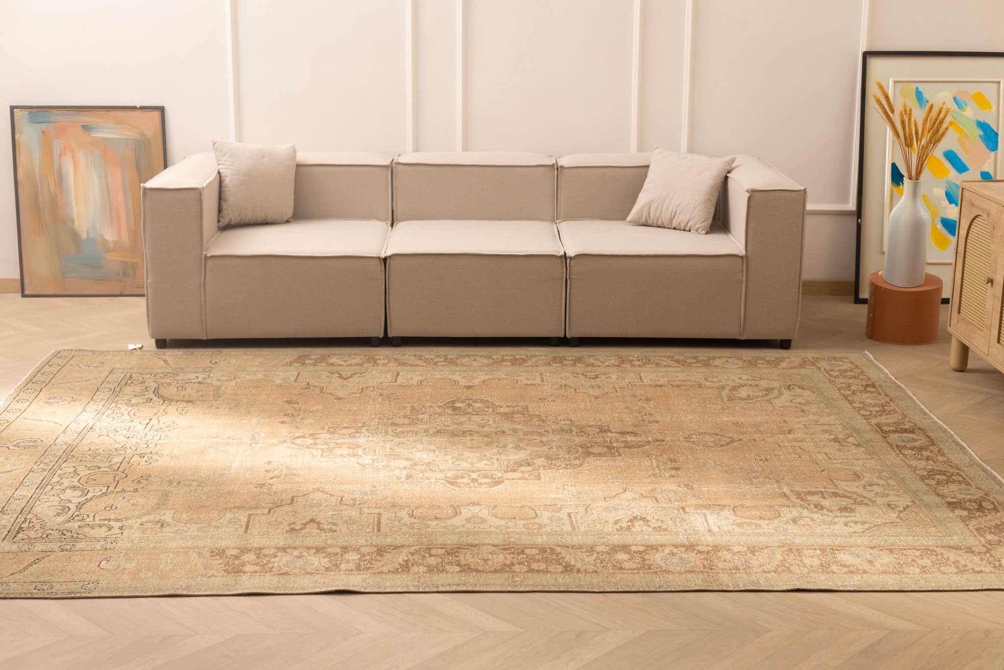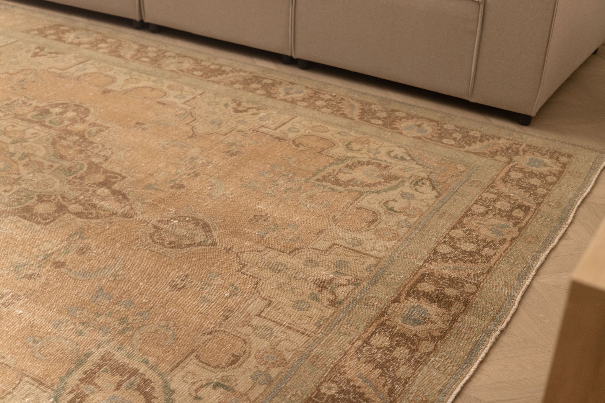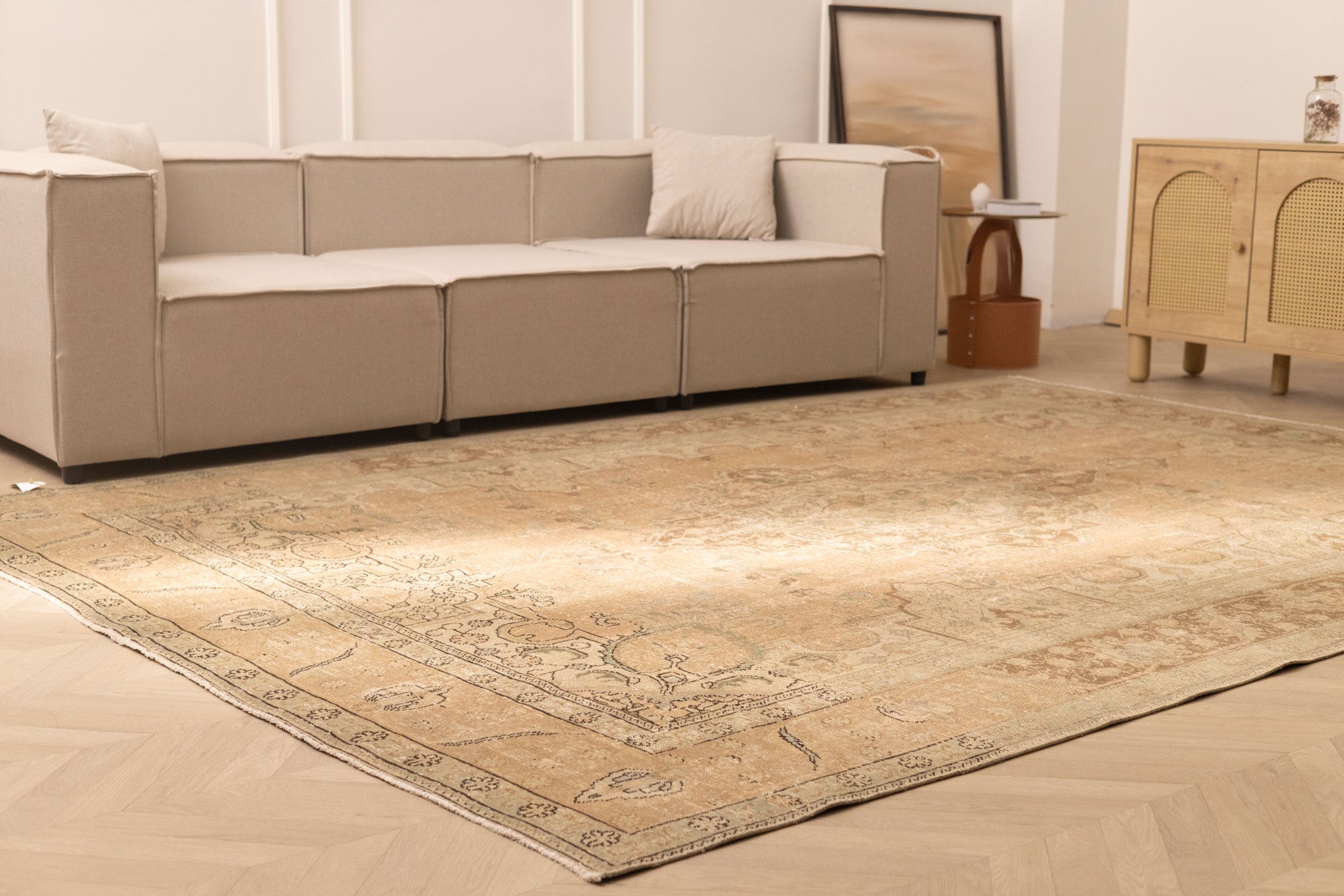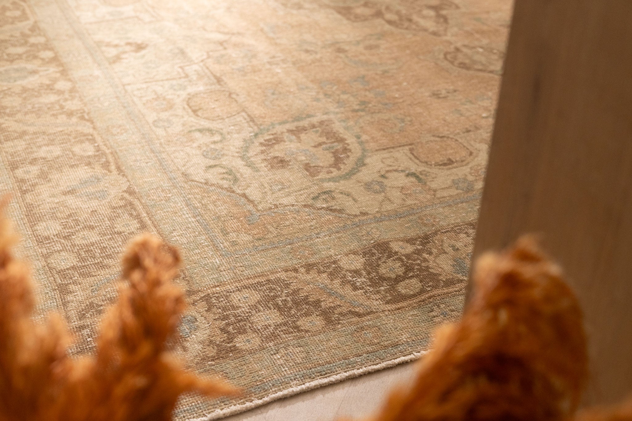 We recommend vacuuming your vintage rug once or twice a month to remove dust and dirt. Use a suction-only vacuum or an attachment without a rotary brush, as this protects the wool fibers and hand-knotted foundation from unnecessary wear.