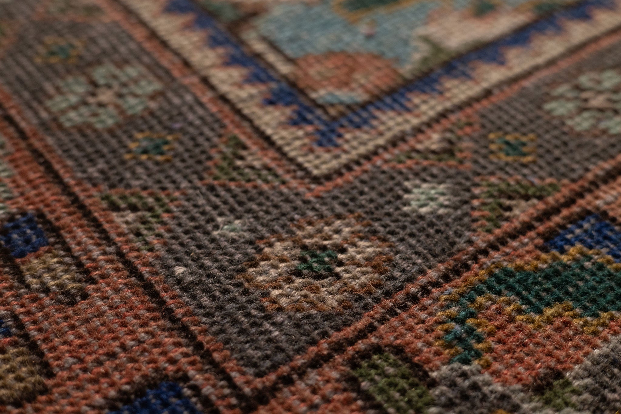 We recommend vacuuming your vintage rug once or twice a month to remove dust and dirt. Use a suction-only vacuum or an attachment without a rotary brush, as this protects the wool fibers and hand-knotted foundation from unnecessary wear.