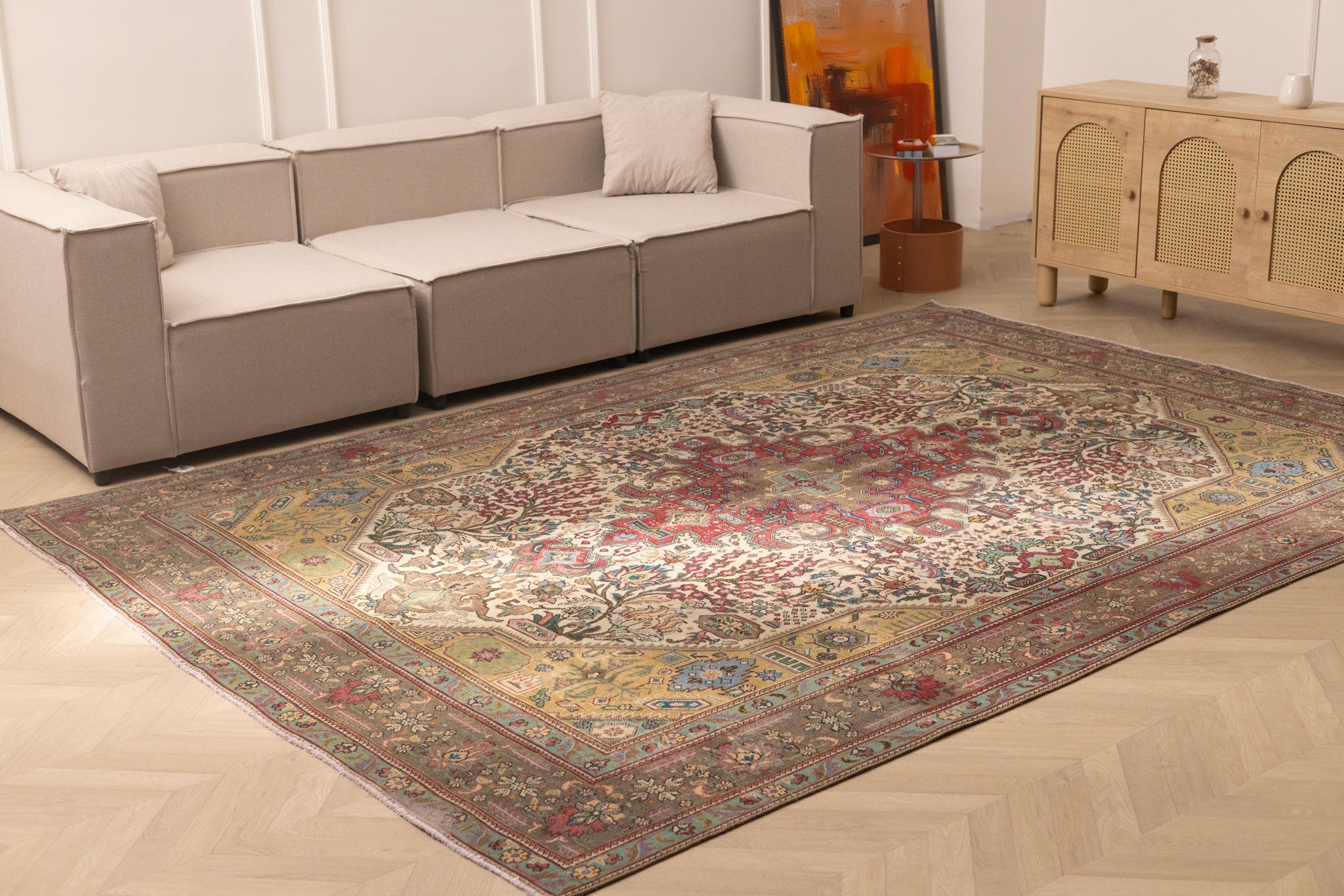 Dive into Alarug's world of hand-selected vintage treasures. Each rug boasts an original design, reflecting centuries of artisanal tradition. Find that singular piece whose character and pattern perfectly complement your space, offering an authentic blend of history and contemporary style.