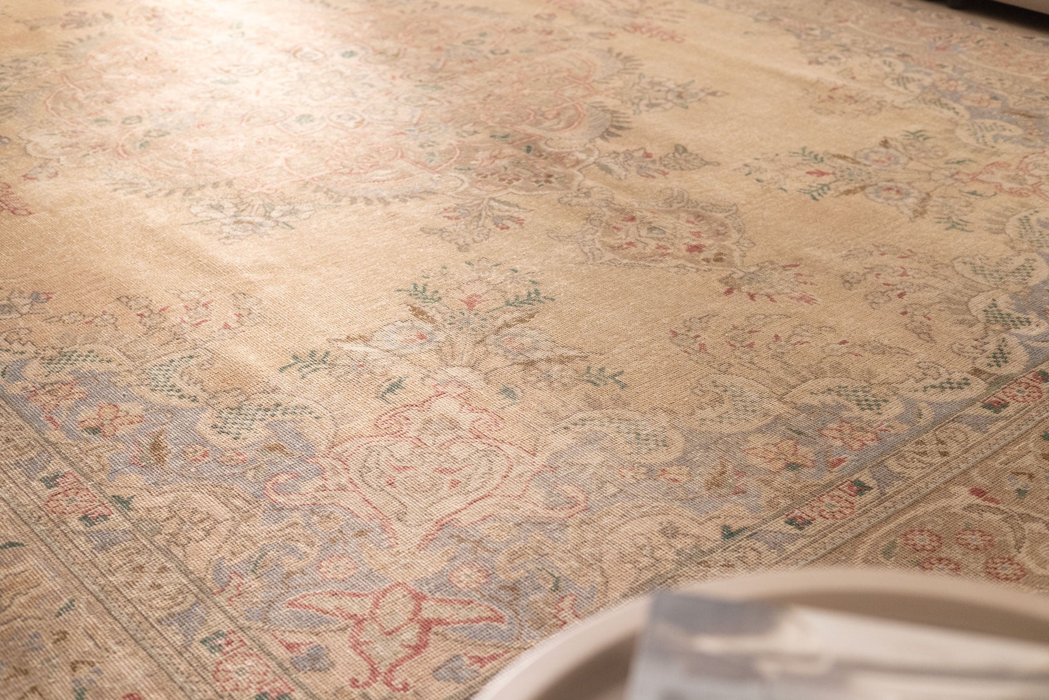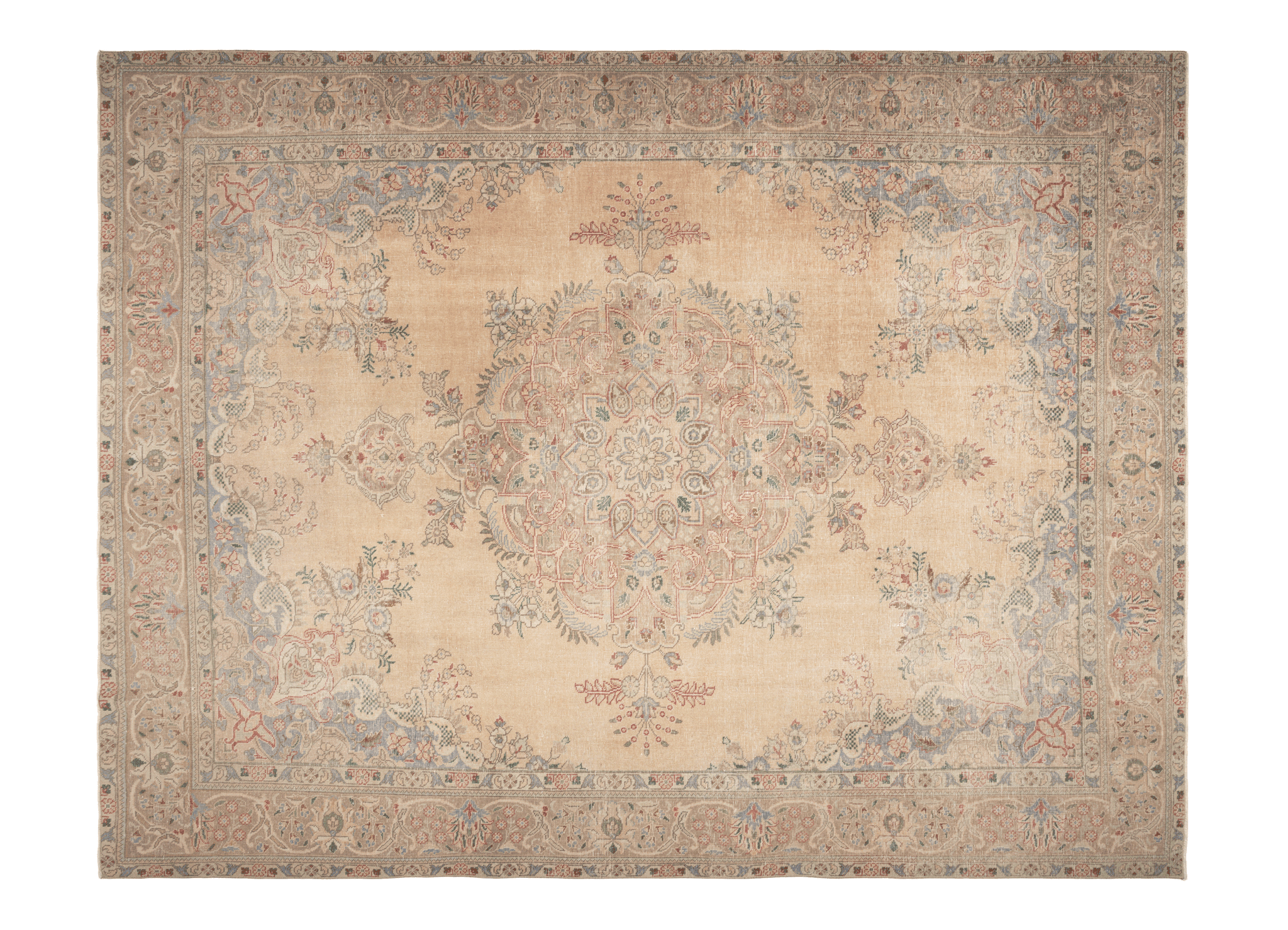We recommend vacuuming your vintage rug once or twice a month to remove dust and dirt. Use a suction-only vacuum or an attachment without a rotary brush, as this protects the wool fibers and hand-knotted foundation from unnecessary wear.