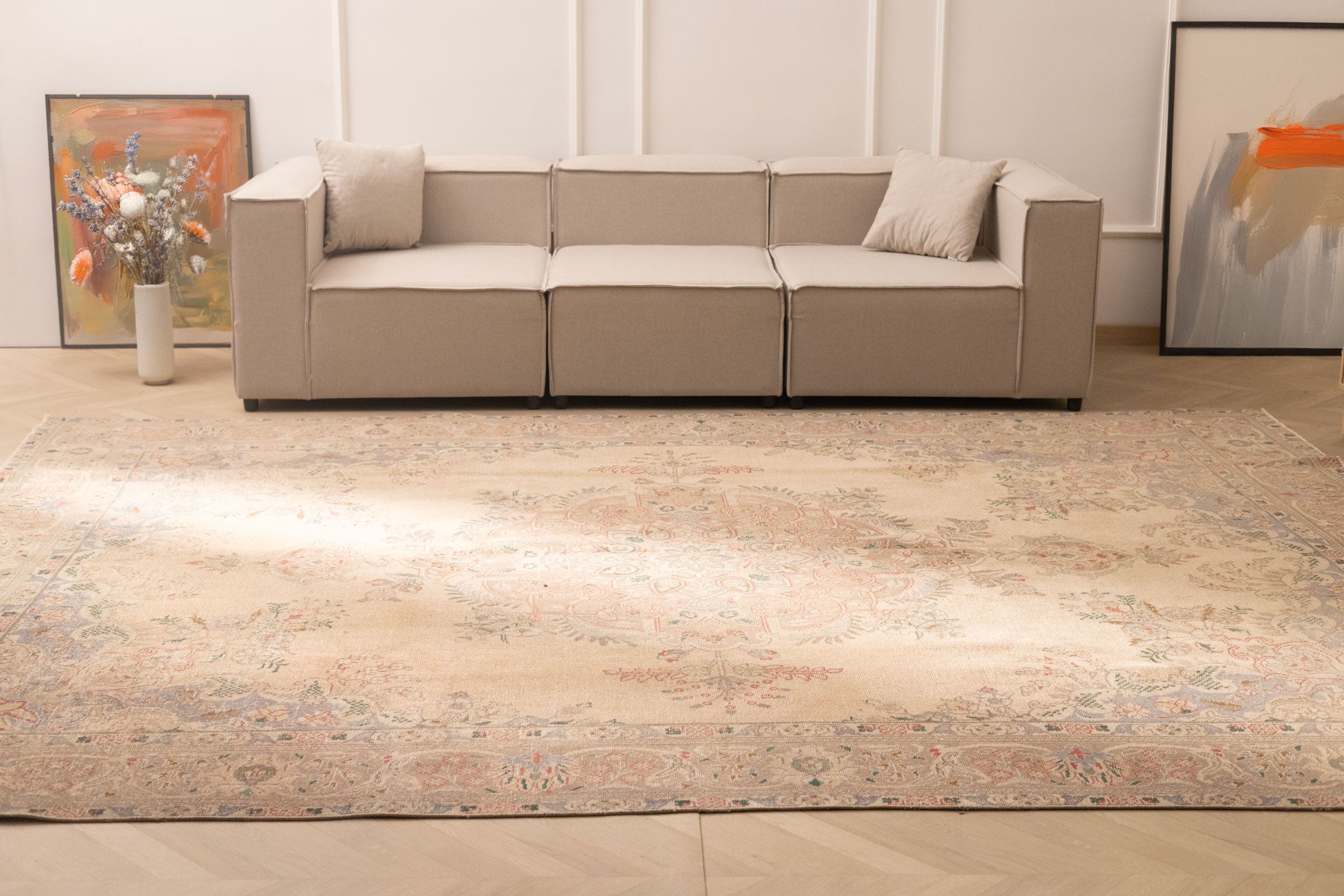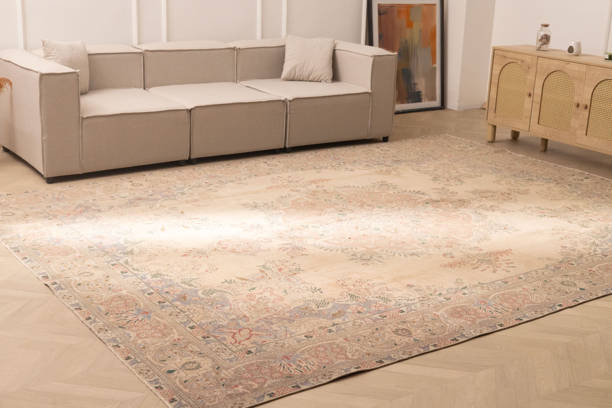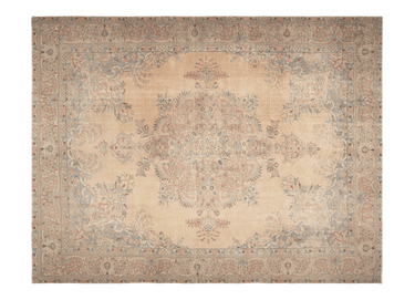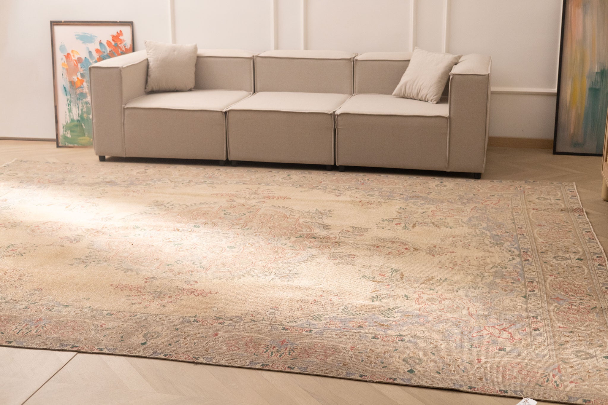 Every 3–5 years, we suggest a professional hand-wash for vintage Turkish rugs. Please avoid steam cleaning or dry cleaning, as these methods can damage natural wool fibers and vegetable dyes. A safe cleaning method involves pH-balanced soap and a soft-bristled brush, followed by gentle rinsing.