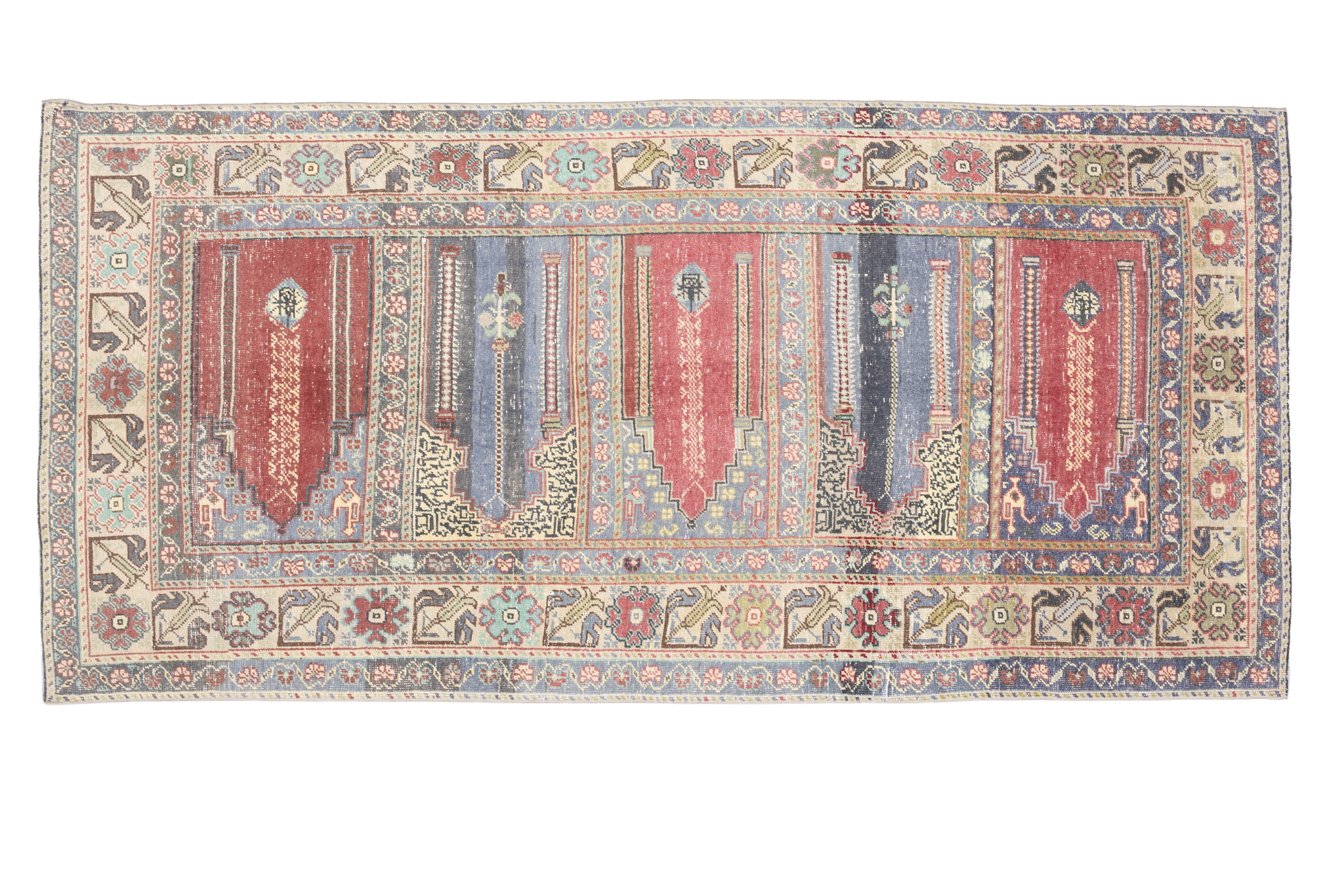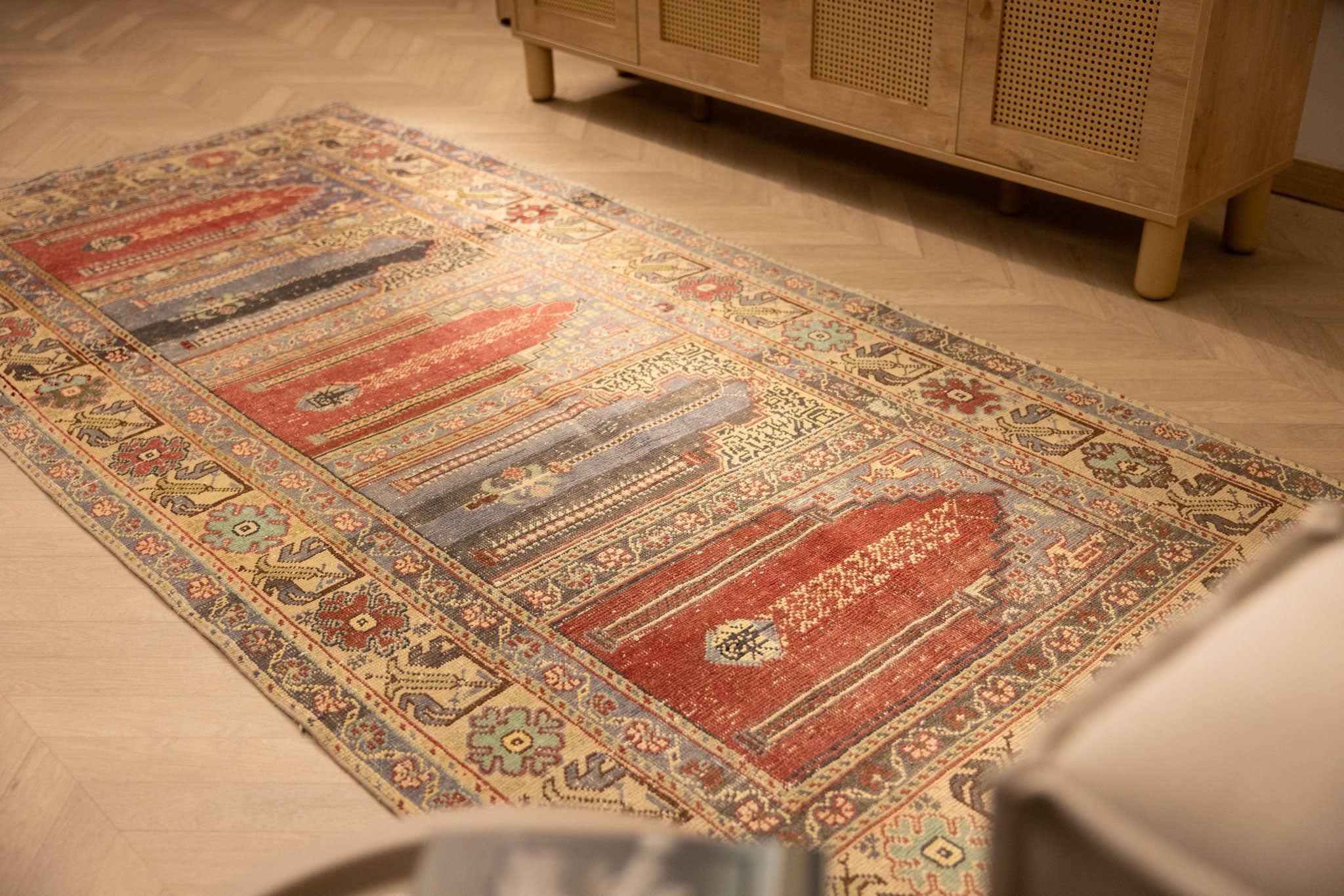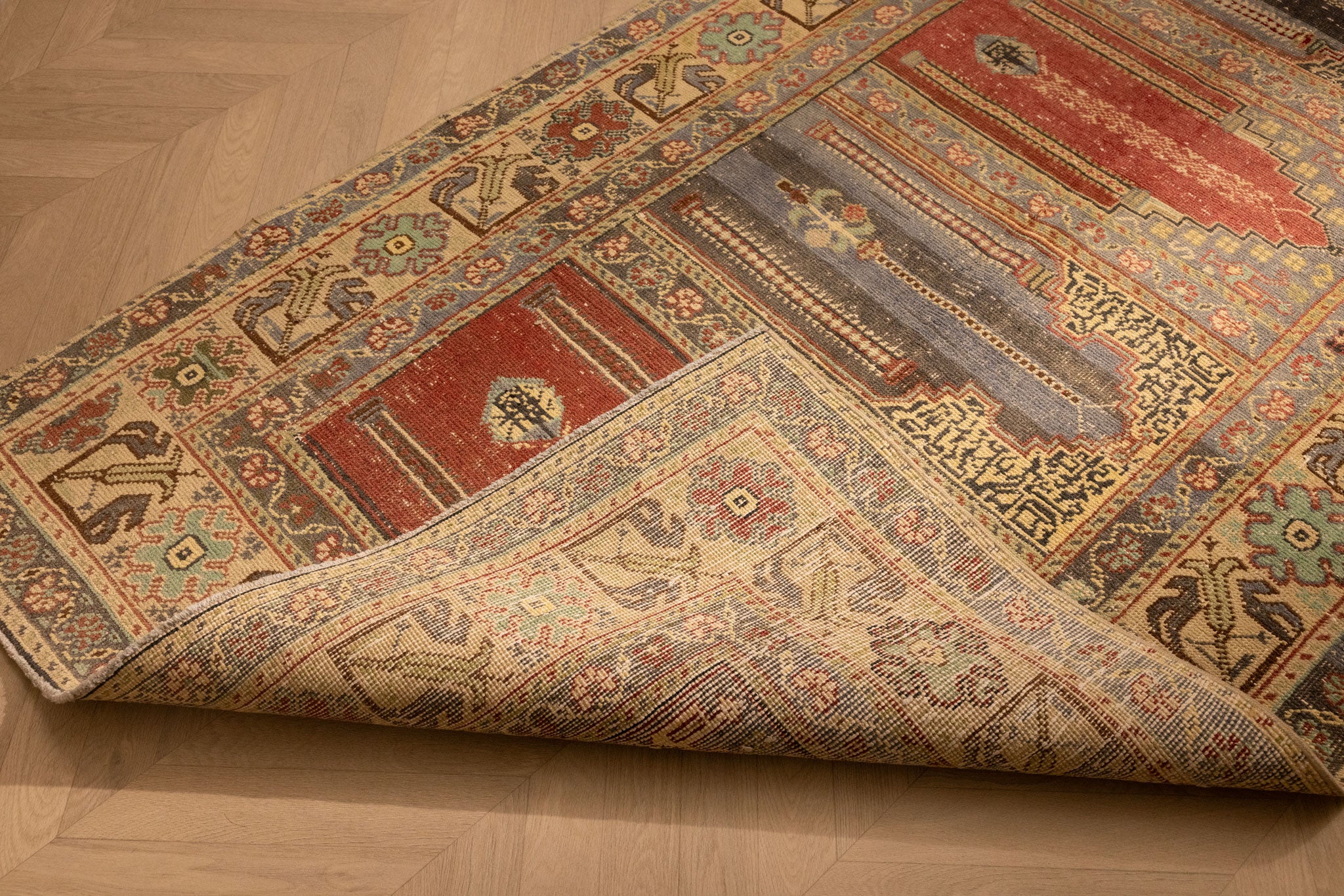 Every 3–5 years, we suggest a professional hand-wash for vintage Turkish rugs. Please avoid steam cleaning or dry cleaning, as these methods can damage natural wool fibers and vegetable dyes. A safe cleaning method involves pH-balanced soap and a soft-bristled brush, followed by gentle rinsing.