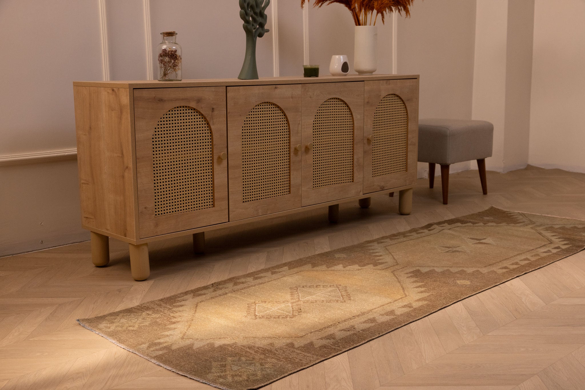 Elevate your space with this Vintage Turkish Runner Rug, handwoven from natural wool and adorned with authentic tribal patterns. Ideal for hallways and narrow spaces, it brings elegance, warmth, and timeless Turkish craftsmanship into your home.