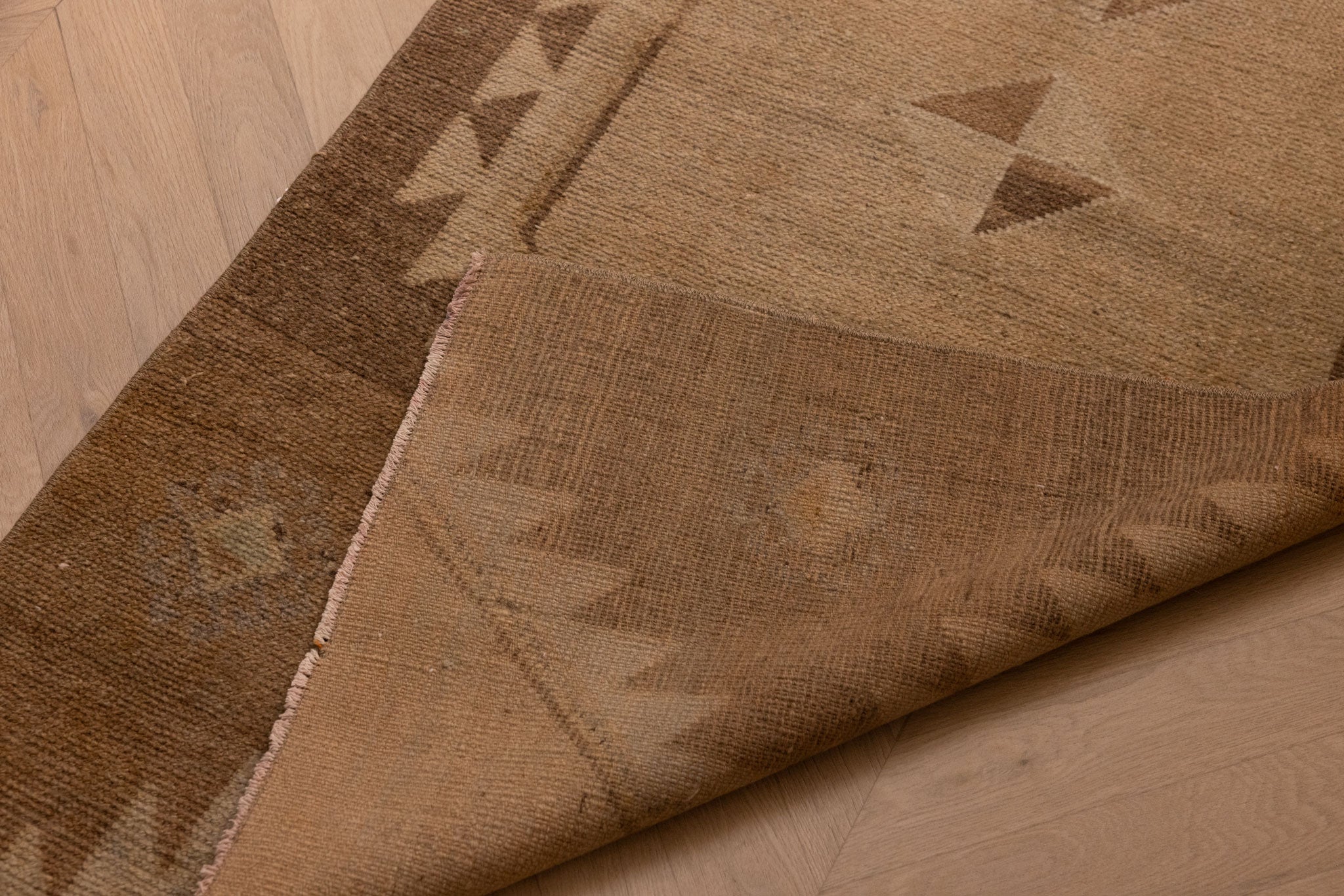 Every 3–5 years, we suggest a professional hand-wash for vintage Turkish rugs. Please avoid steam cleaning or dry cleaning, as these methods can damage natural wool fibers and vegetable dyes. A safe cleaning method involves pH-balanced soap and a soft-bristled brush, followed by gentle rinsing.