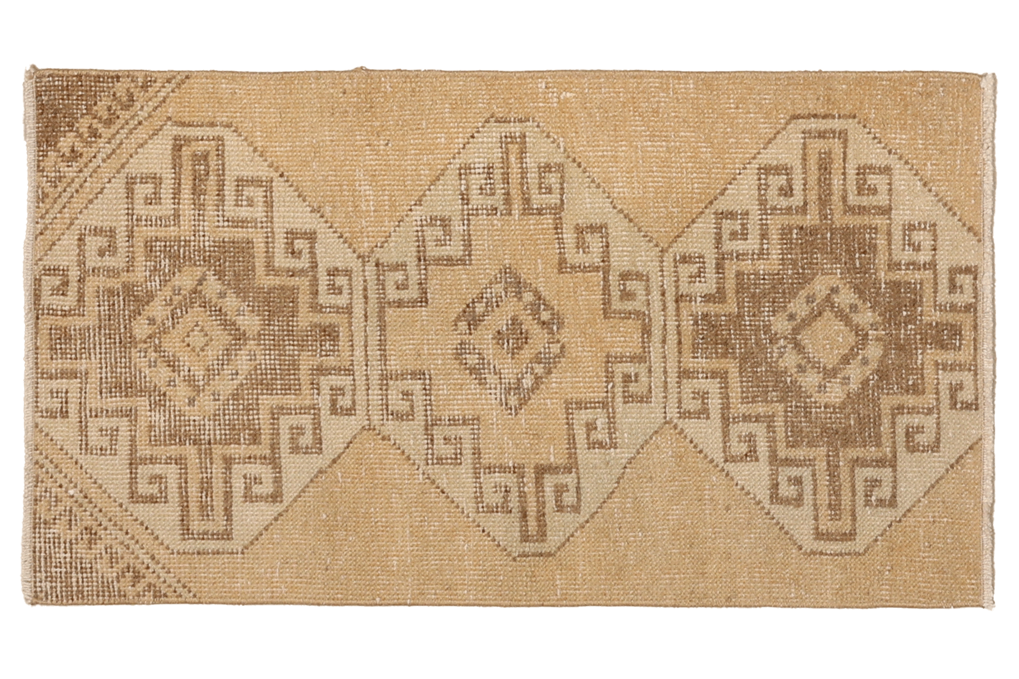 Elevate your space with this authentic Vintage Turkish Runner Rug, masterfully handwoven in Malatya, Turkey. Featuring timeless brown geometric tribal patterns set against a versatile beige palette, this piece seamlessly blends traditional Turkish craftsmanship with modern farmhouse style decor.