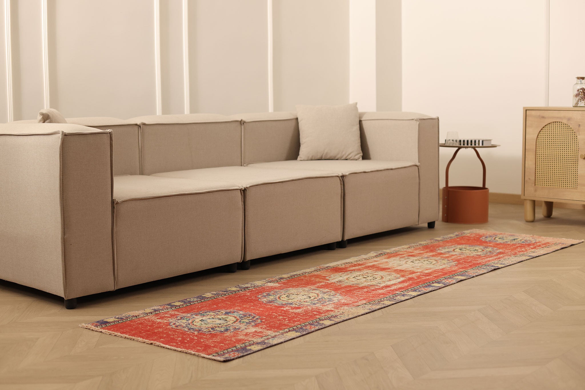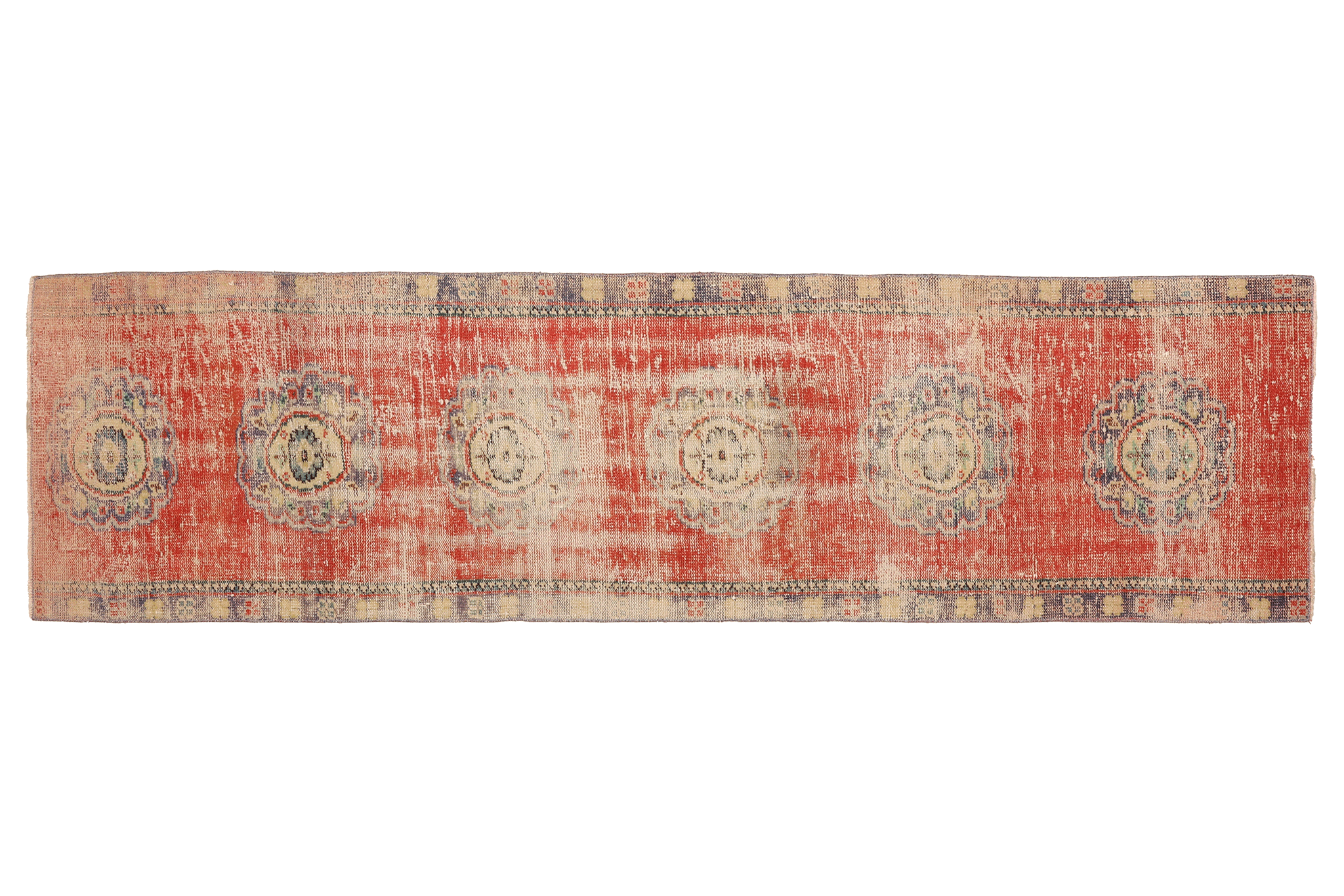 Elevate your space with this authentic Vintage Turkish Runner Rug, masterfully handwoven in Manisa, Turkey. Featuring timeless handwoven from natural wool and adorned with authentic tribal tribal patterns set against a versatile red palette, this piece seamlessly blends traditional Turkish craftsmanship with modern traditional style decor.