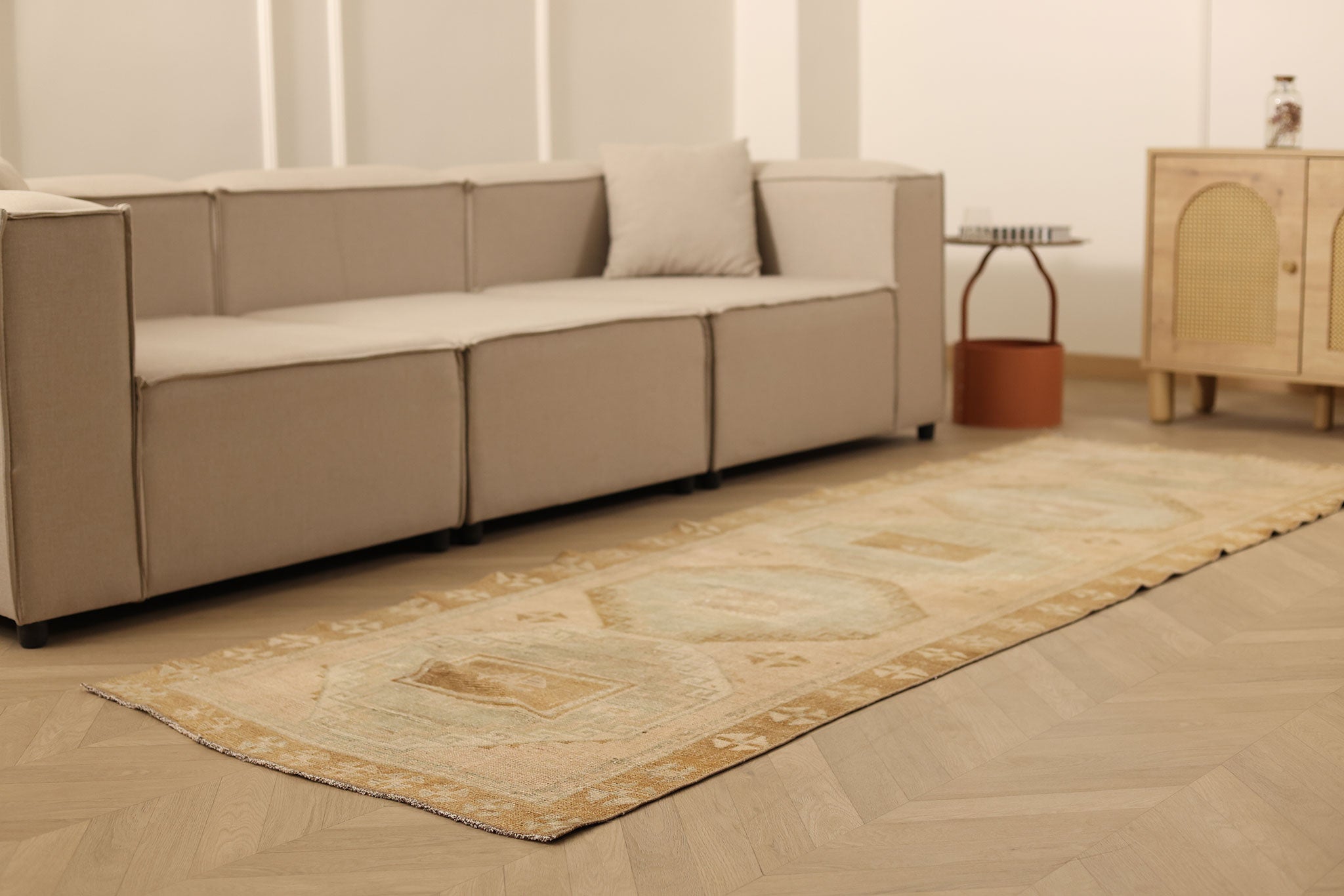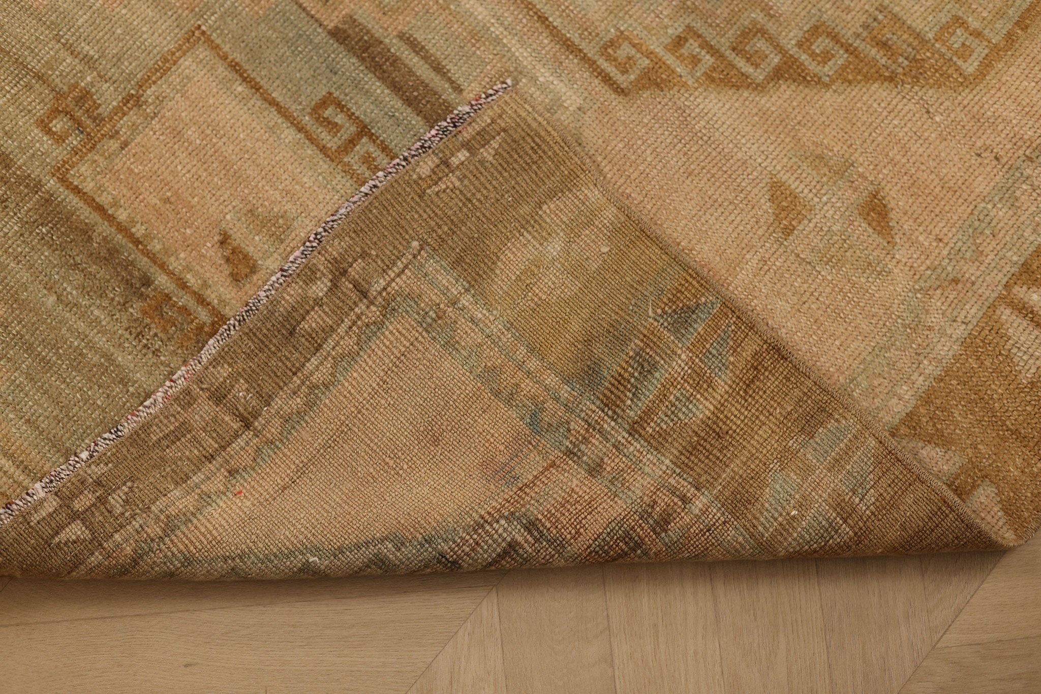 Elevate your space with this authentic Vintage Turkish Runner Rug, masterfully handwoven in Malatya, Turkey. Featuring timeless geometric tribal patterns set against a versatile beige palette, this piece seamlessly blends traditional Turkish craftsmanship with modern rustic style decor.