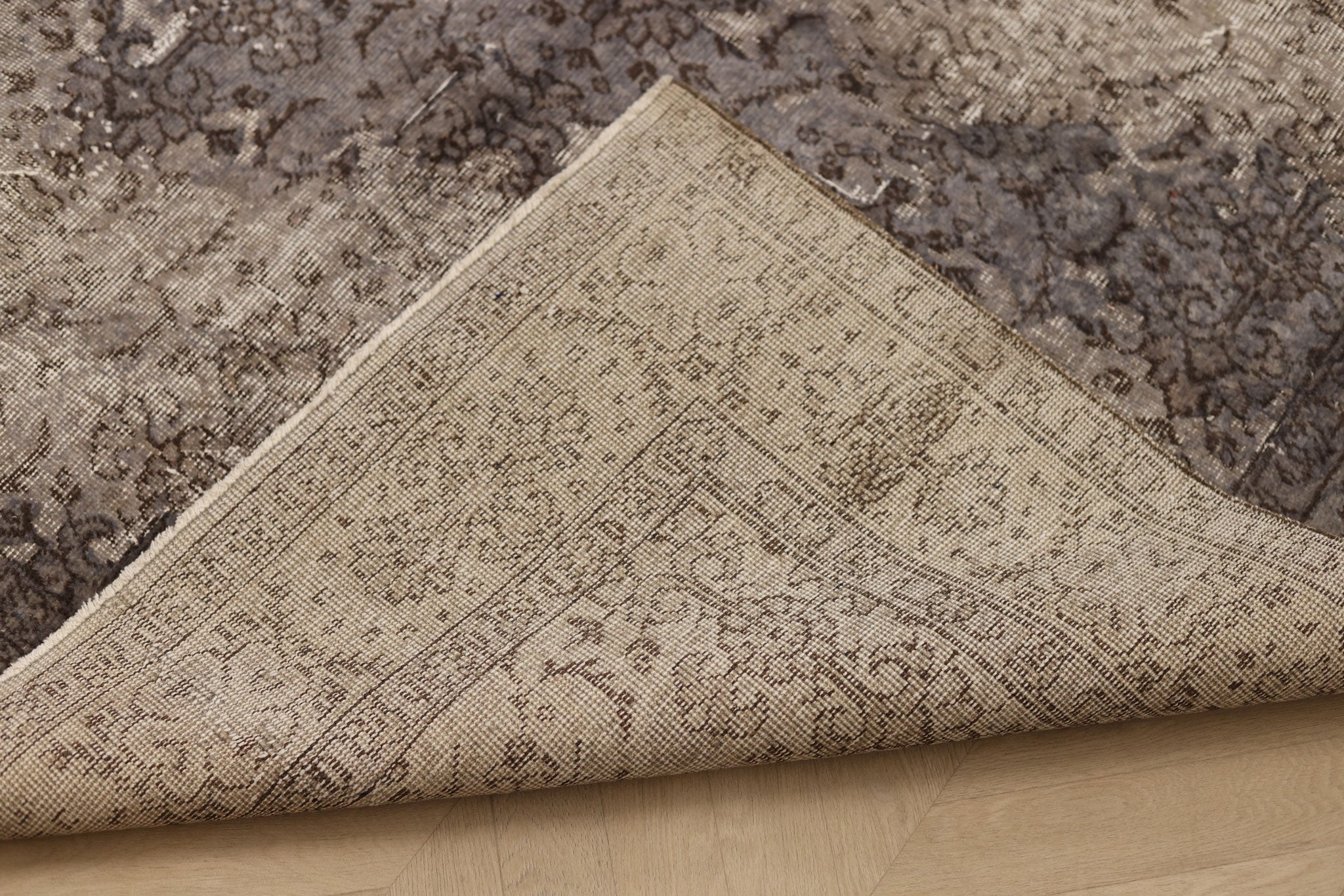 Every 3–5 years, we suggest a professional hand-wash for vintage Turkish rugs. Please avoid steam cleaning or dry cleaning, as these methods can damage natural wool fibers and vegetable dyes. A safe cleaning method involves pH-balanced soap and a soft-bristled brush, followed by gentle rinsing.