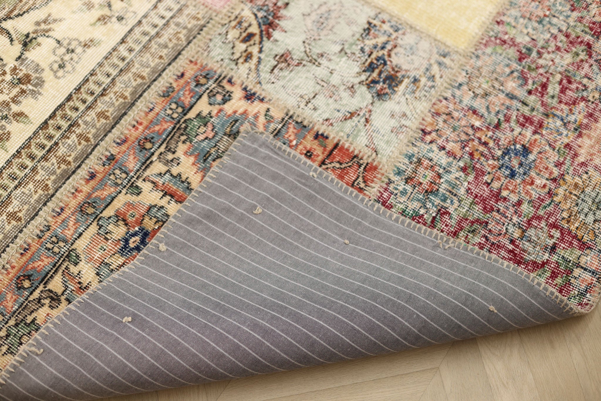 Every 3–5 years, we suggest a professional hand-wash for vintage Turkish rugs. Please avoid steam cleaning or dry cleaning, as these methods can damage natural wool fibers and vegetable dyes. A safe cleaning method involves pH-balanced soap and a soft-bristled brush, followed by gentle rinsing.